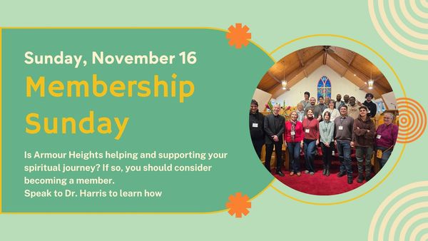 Membership is not about giving more money or giving more time. Membership is not about being super religious or increasing your attendance or participation. Membership is about committing yourself at this point in your life to journeying toward God in the company of a particular fellowship of God’s people. If Armour Heights church is helping and supporting your spiritual journey, you should consider becoming a member.