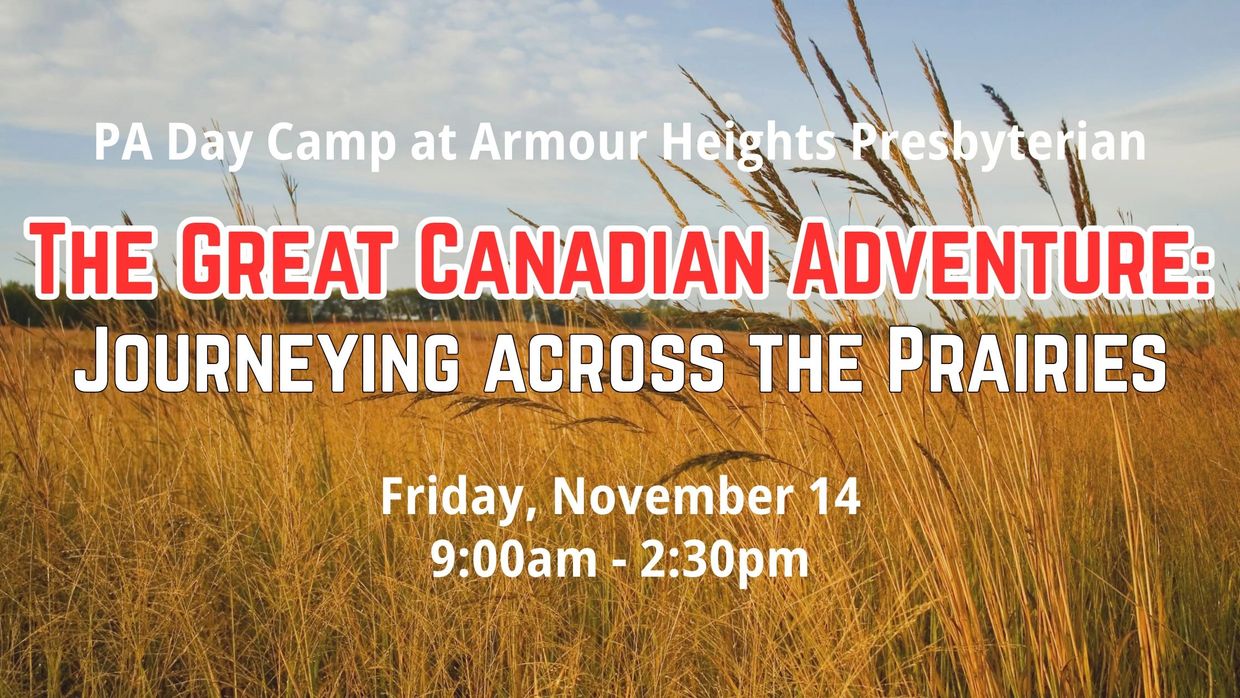 Children ages 5-12 are invited to join us as we continue our Great Canadian Adventure! We will explore the vastness and openess of the prairies through games, stories, crafts and more.